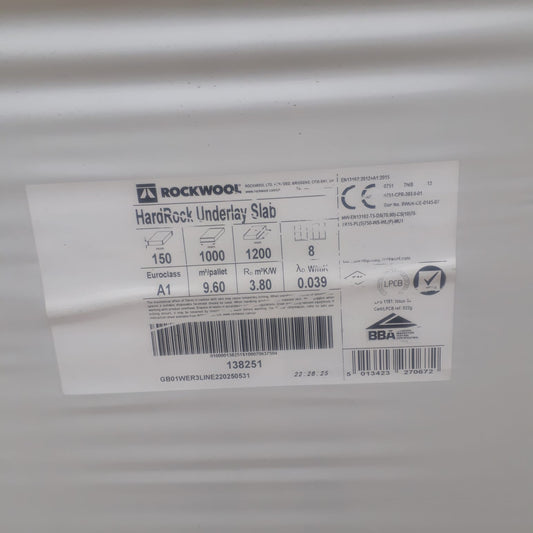 150mm Rockwool Hardrock Underlay Slab 1000 x 1200 9.6sqm